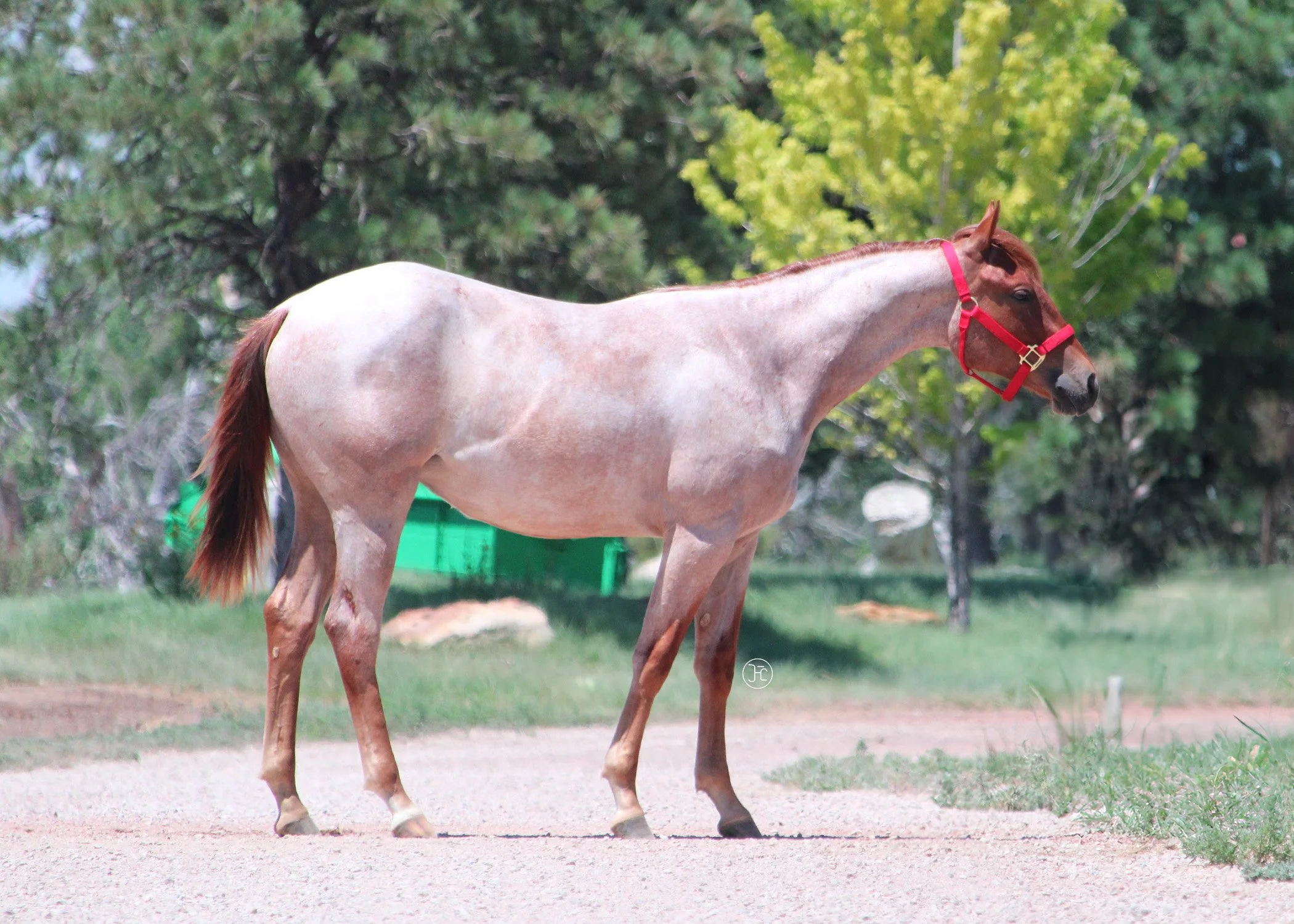 This filly has all the pieces to be a standout in any timed event or even the cowhorse pen. She has size, athleticism and speed. She is a very gritty and smart filly. Colts out of her dam have proven to be easy to start and very willing. Out of a King Ranch mare.
