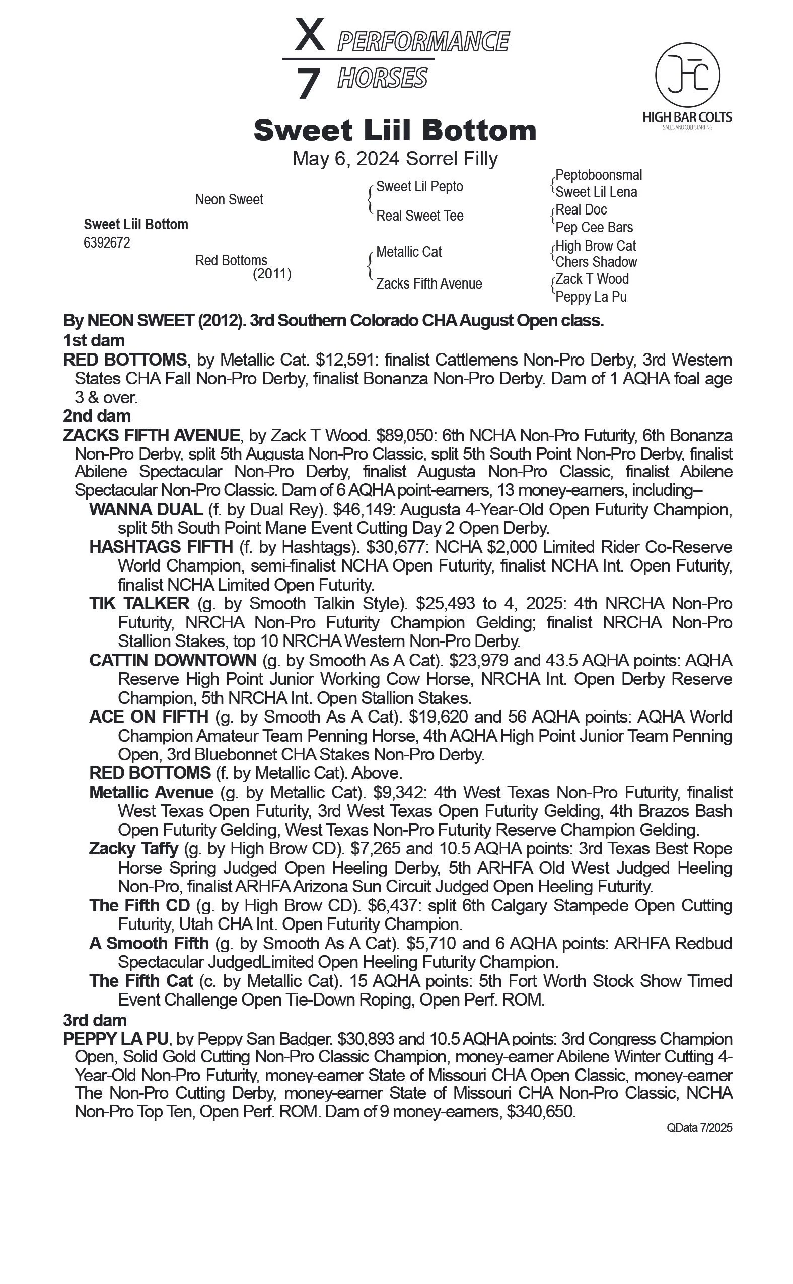 This filly is a cutter through and through. Great strong stops and light quick feet. She is sweet and trainable with a great deal of intelligence. Very flashy filly with beautiful markings and lots of chrome. A very strong maternal side will ensure that she is an asset to your program long after she has proven herself in the show pen.